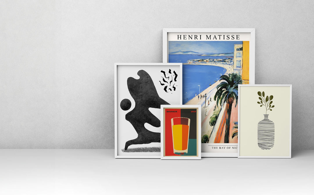 | Grid | Bauhaus, minimalist, uniform collections | 5-8 cm between frames | Same-style or same-series prints | Easy |