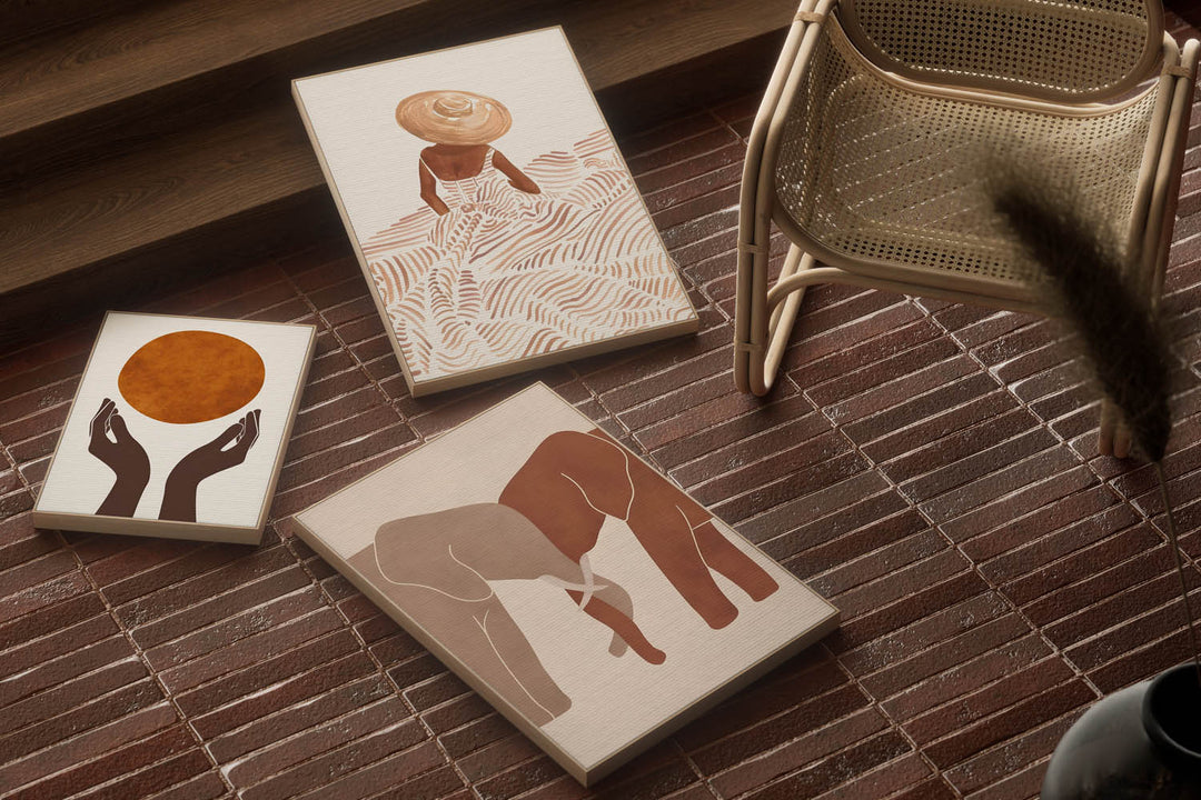 A gallery wall looks intentional when the pieces share at least one common element โ colour palette, frame style, or art style. Pick one and stick to it.
