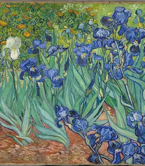 Painted in the asylum garden, Irises is looser and more botanical than most of Van Gogh's work. The deep blue-purple of the flowers against green-grey foliage is visually lush without being overwhelming. Works in bathrooms, reading rooms, and bedrooms — the botanical quality makes it calming rather than emotionally charged.