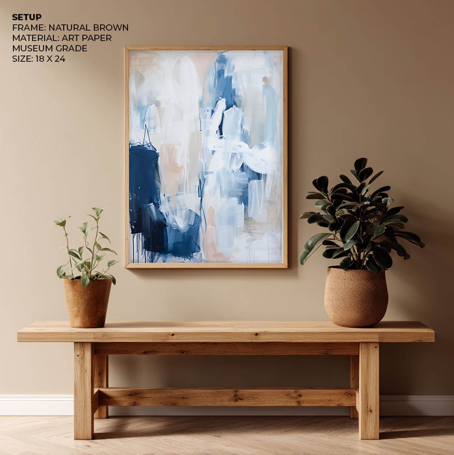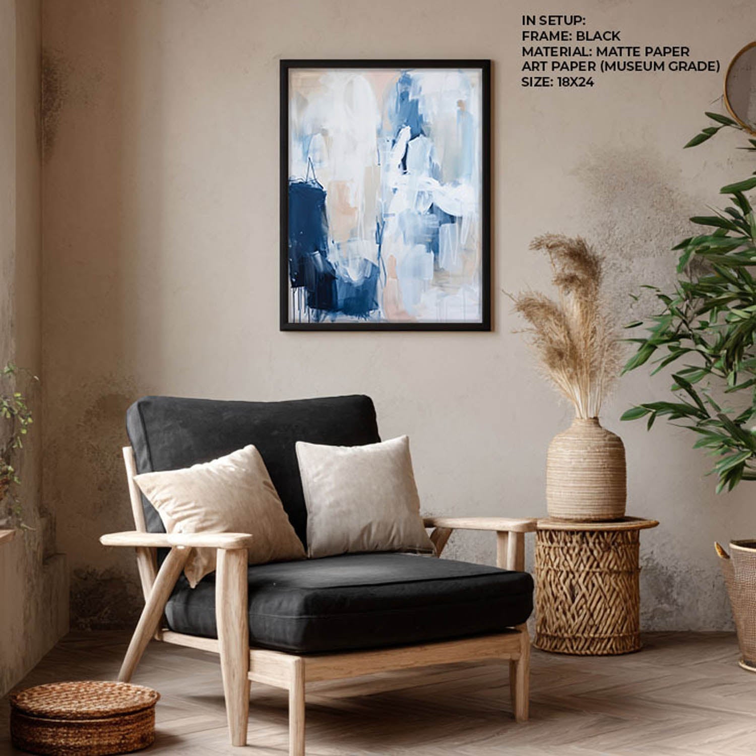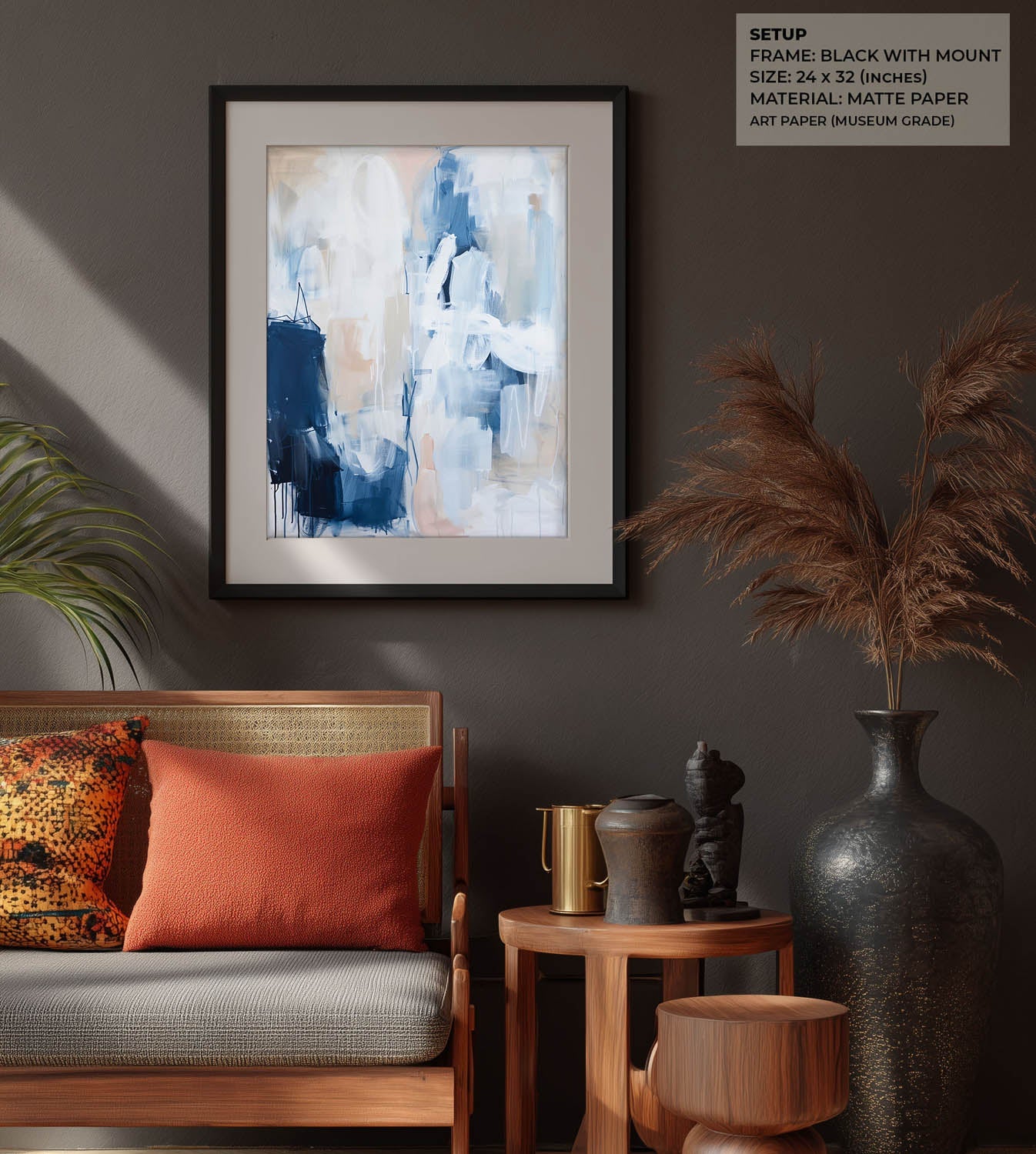 Loose brush strokes in soft blues and whites create an expressive, painterly abstract with a light, airy feel.