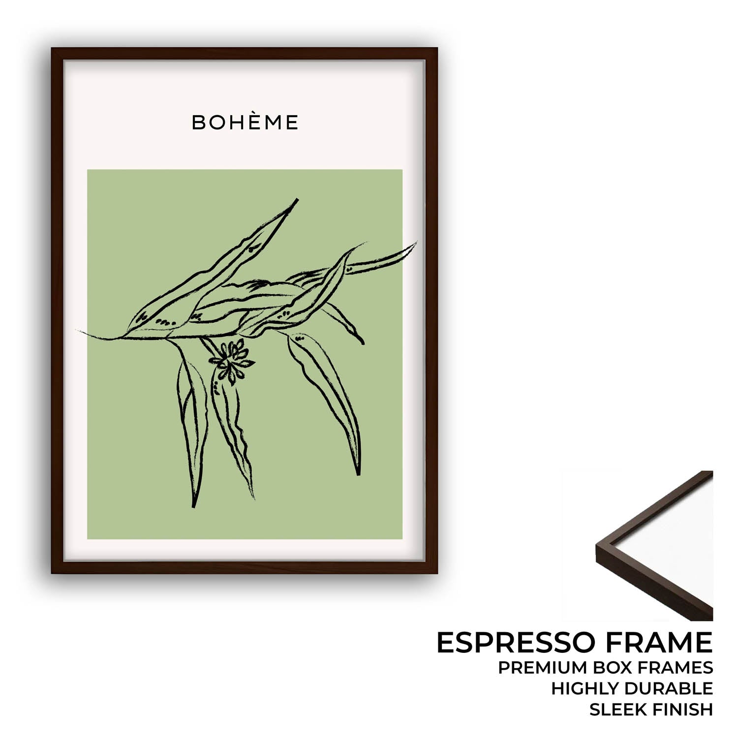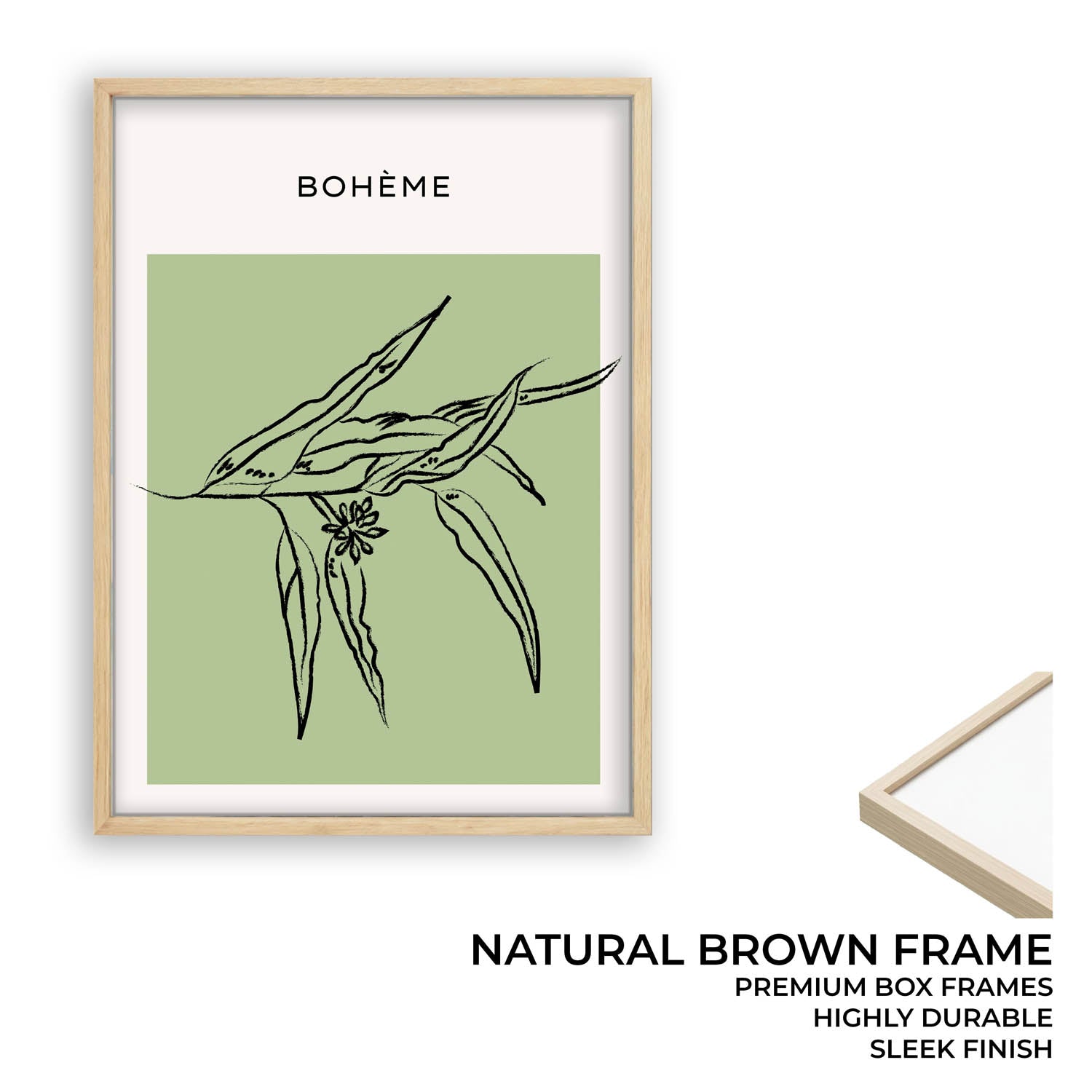 Leaflet captures a soft botanical moment with hand-drawn leaves stretching gently across a sage green canvas — a breath of calm for your walls.
