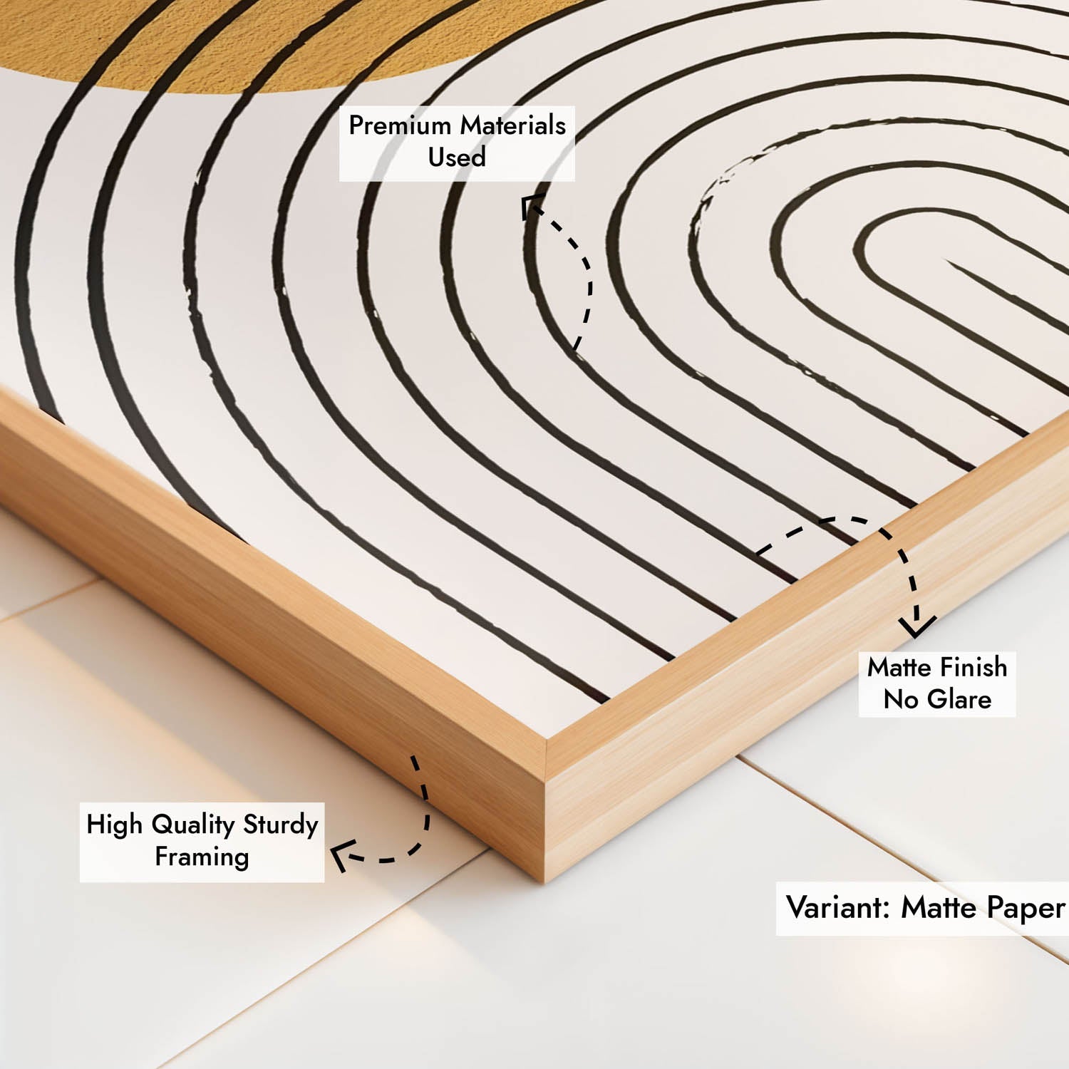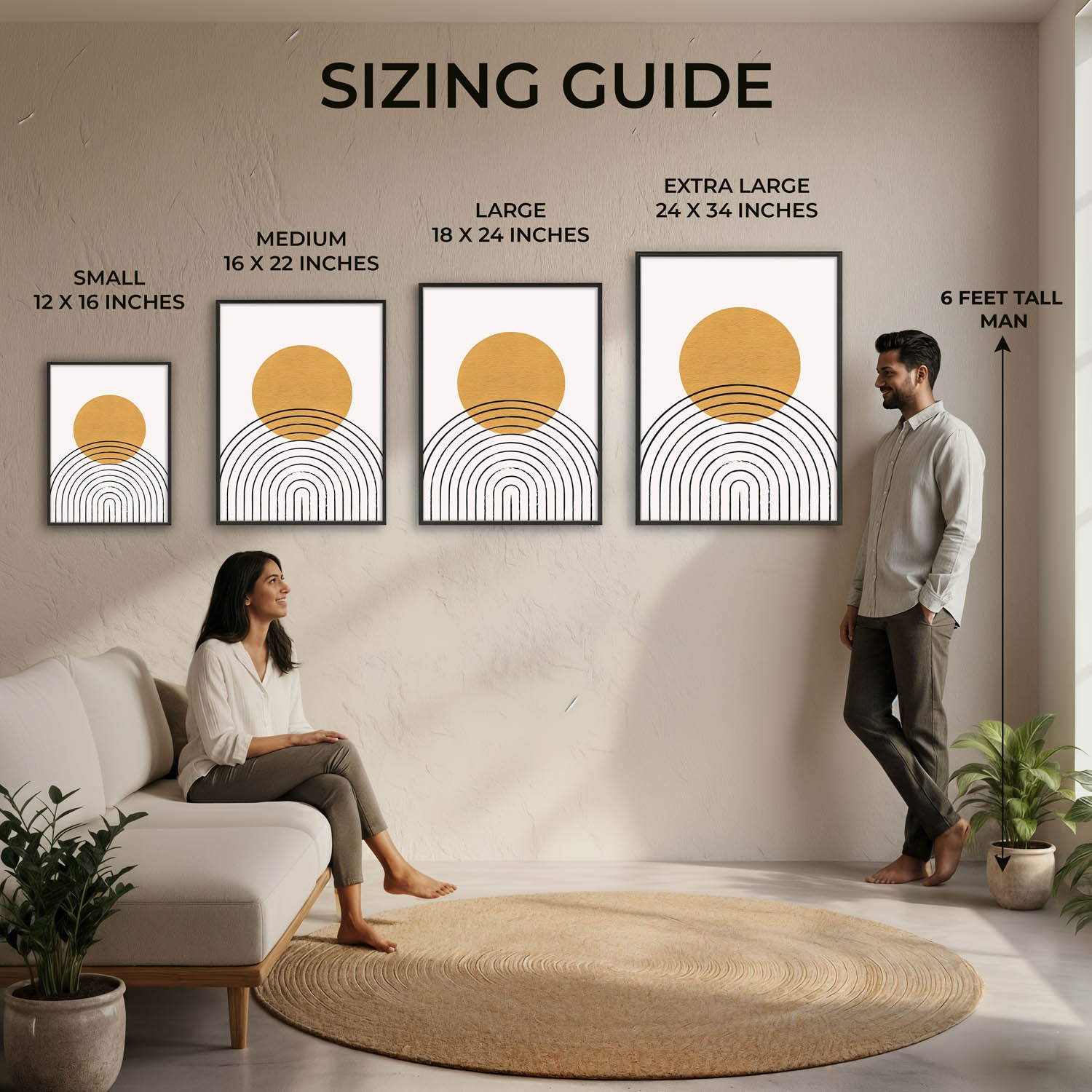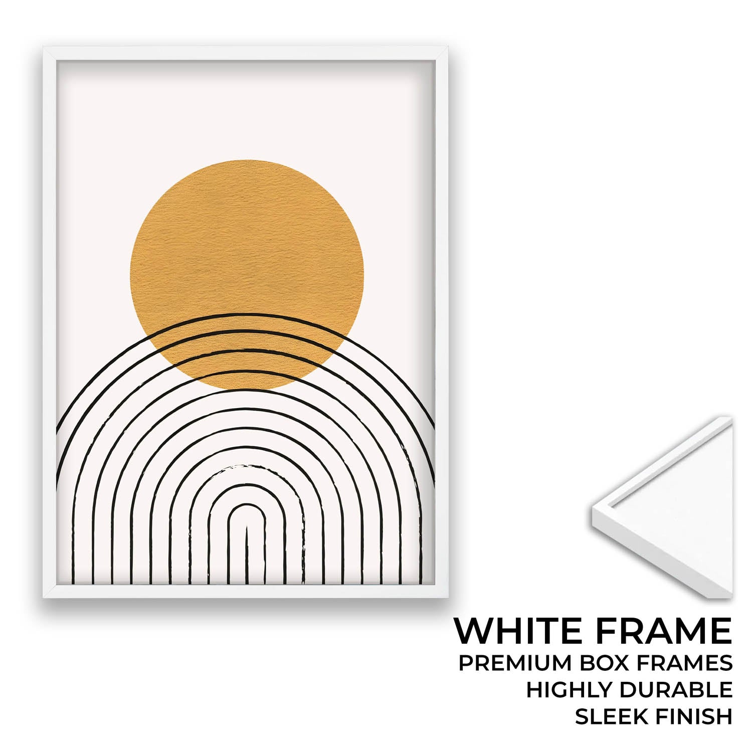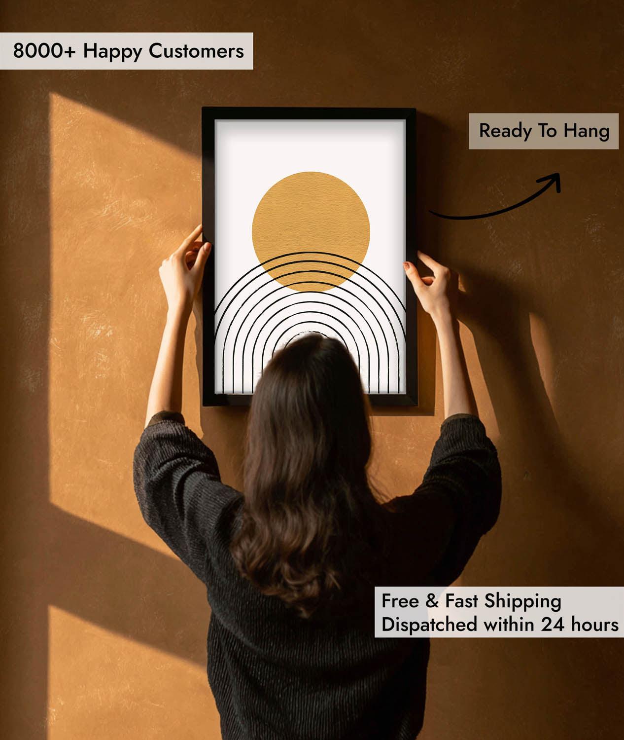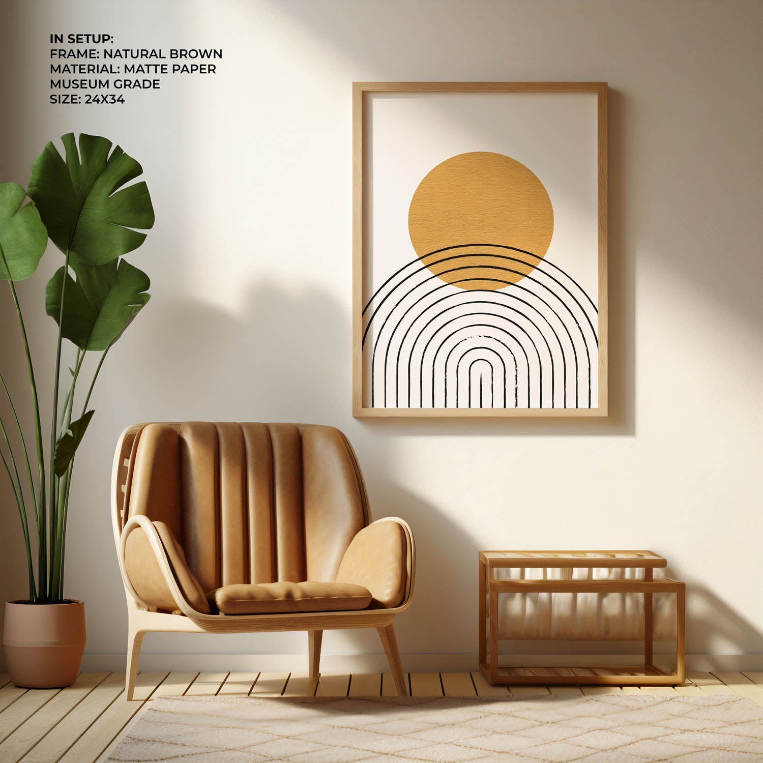 Horizon evokes a golden sunrise rising above rhythmic arches, symbolizing new beginnings and grounded optimism. A clean, modern statement piece perfect for boho and minimal interiors alike.