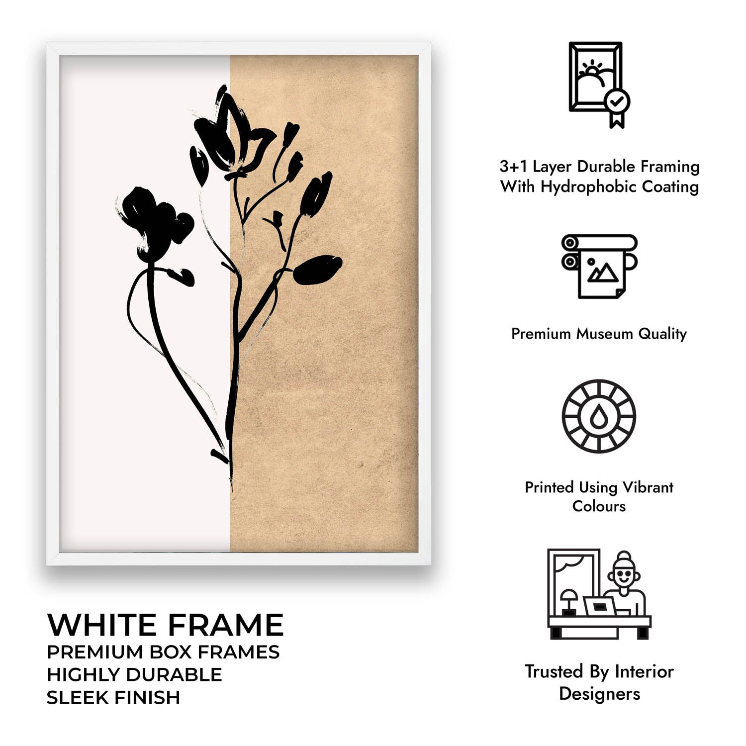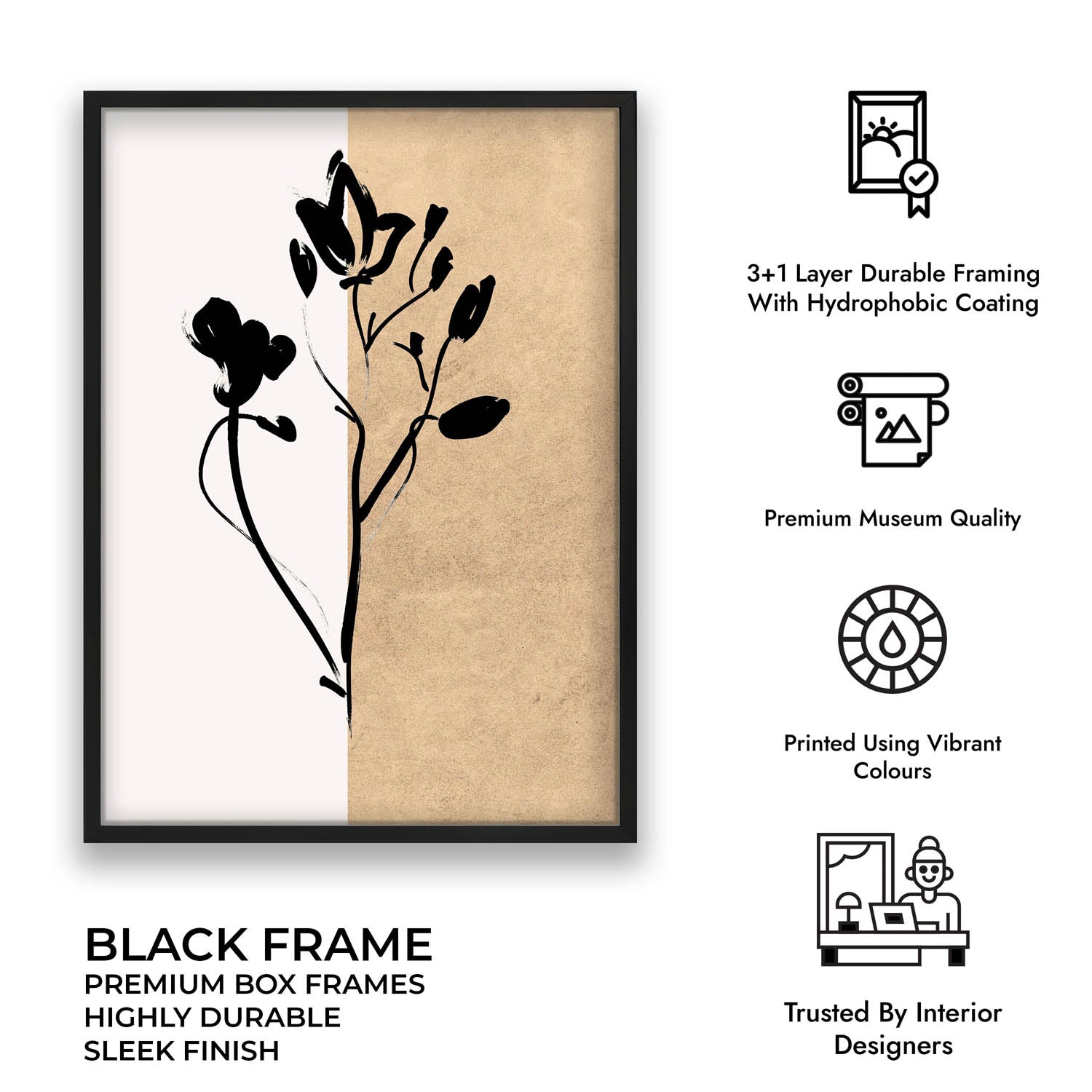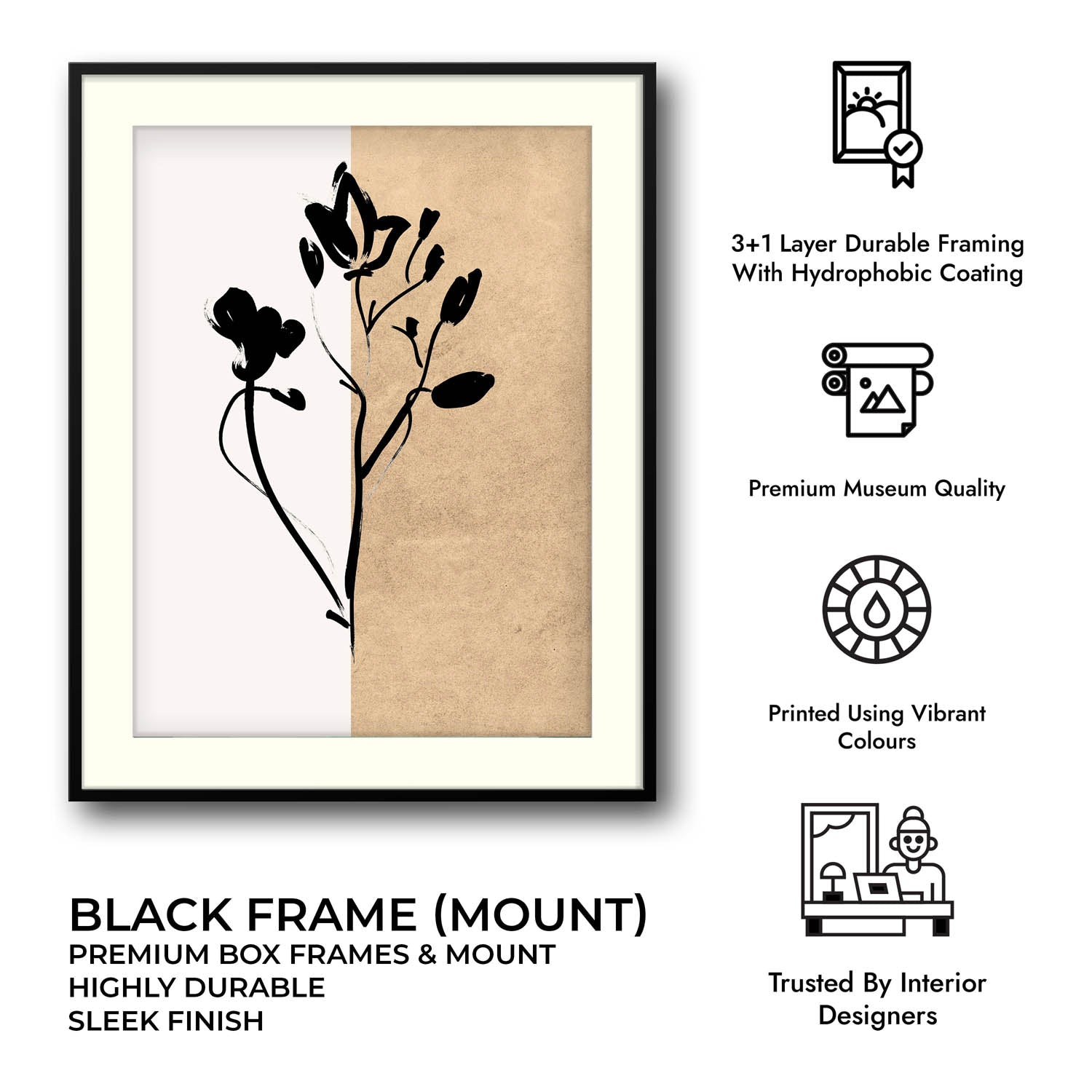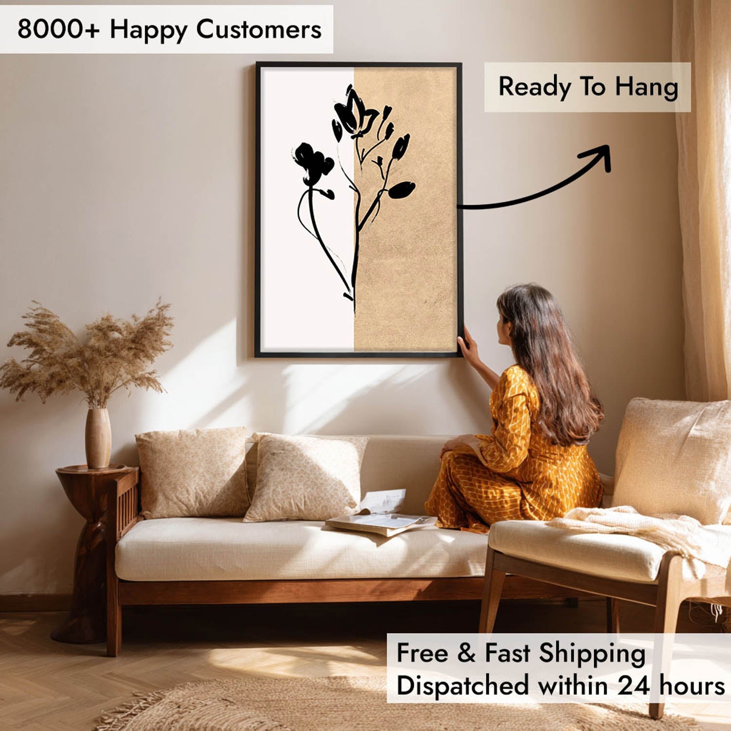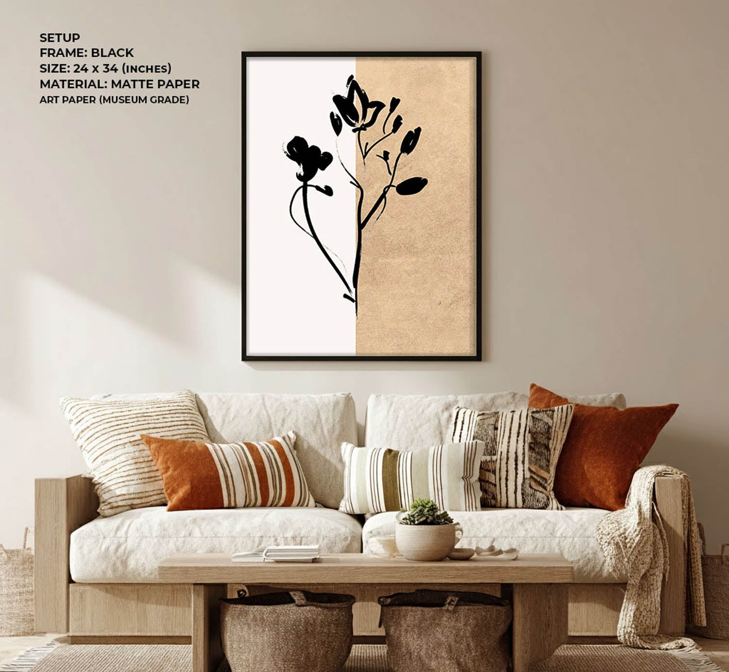 Bring home the quiet beauty of Midnight Flower, where a delicate floral silhouette in black blooms across a two-toned background, blending nature with soft minimalism.