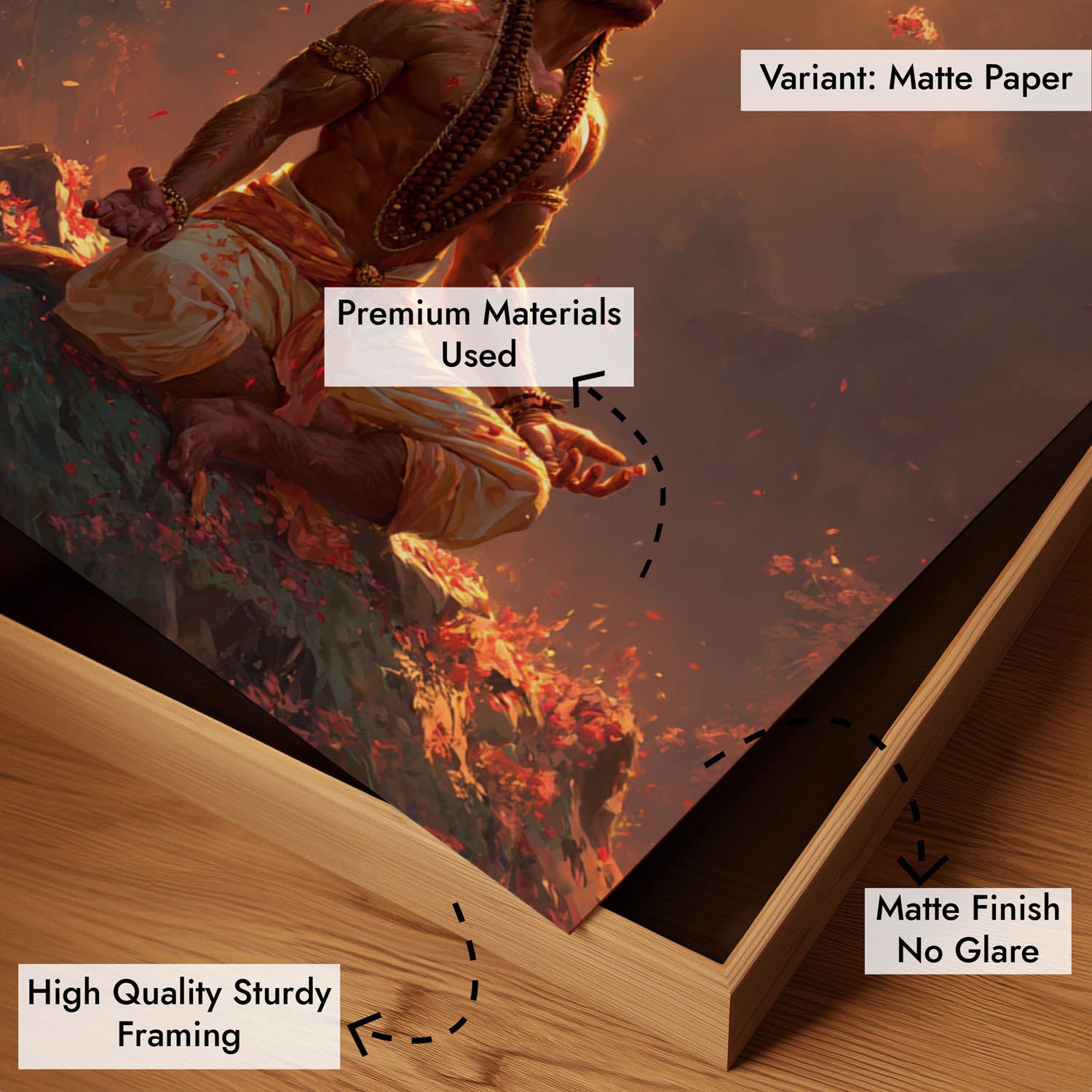 Fill your home with strength and devotion through this powerful Lord Hanuman painting. Depicting Bajrangbali in deep meditation under glowing light, this artwork radiates courage, discipline, and spiritual energy. A vastu-perfect wall art for pooja rooms, meditation spaces, living rooms, and offices seeking divine blessings.