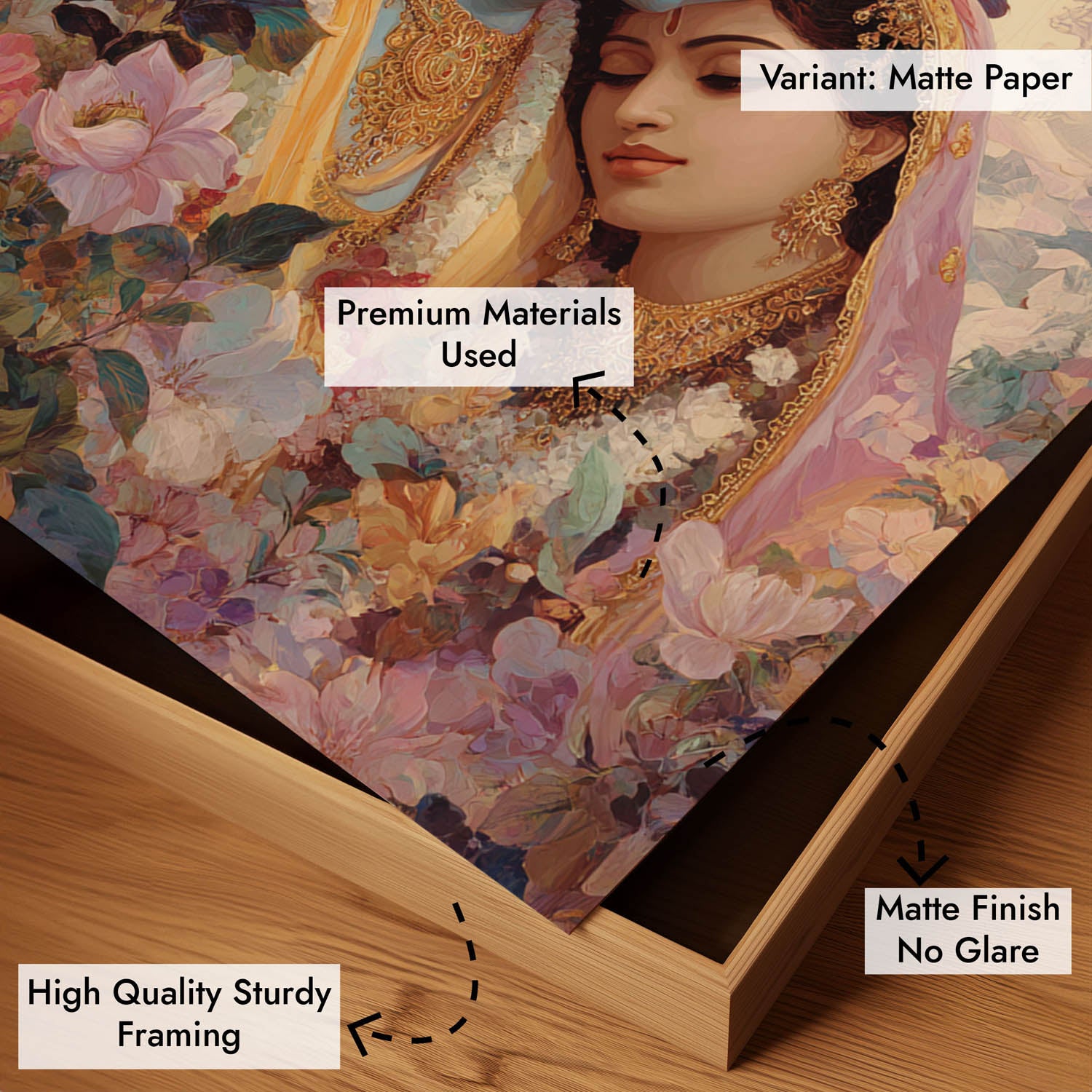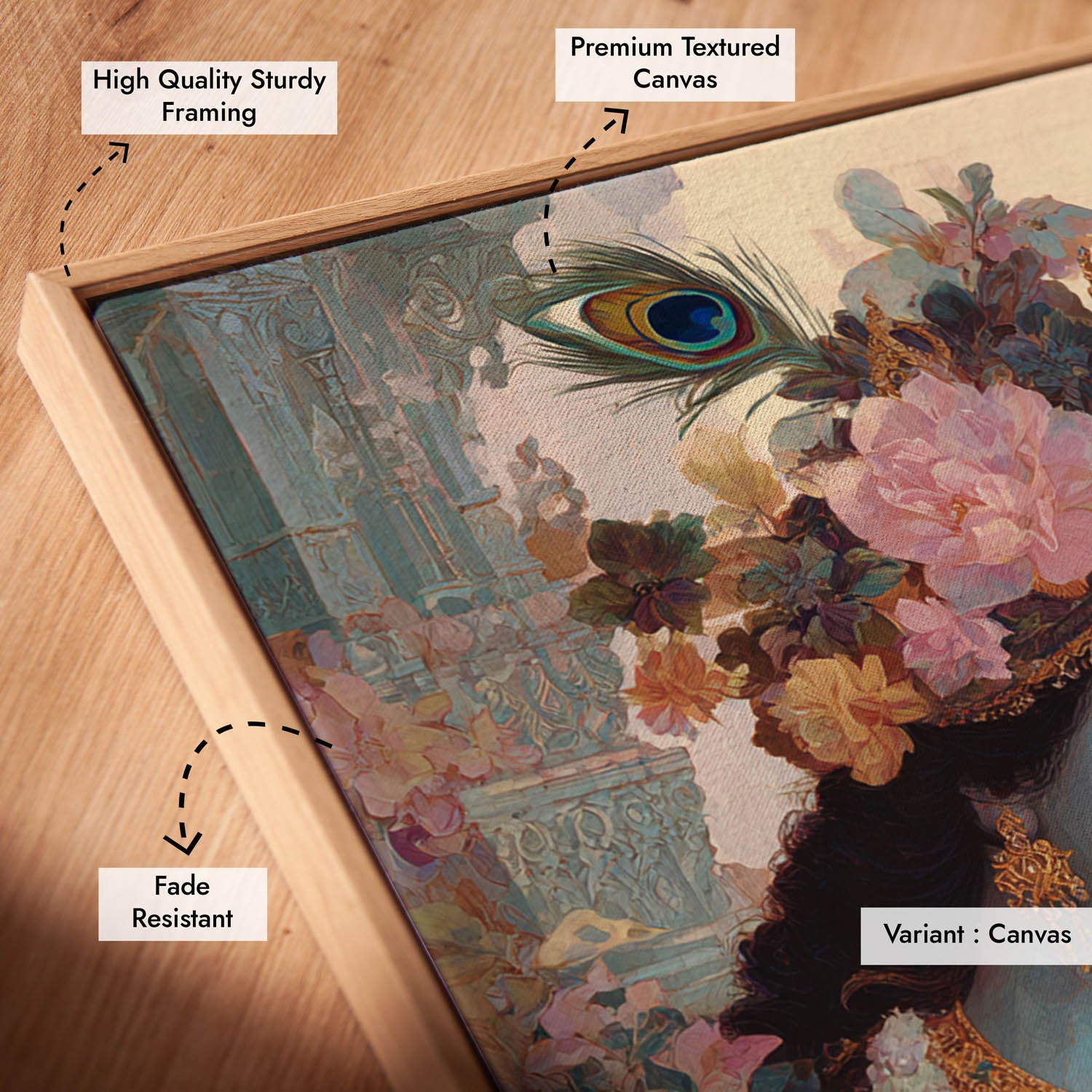 Celebrate the eternal bond of Radha and Krishna with this divine painting. Surrounded by blooming flowers and soft hues, the artwork beautifully captures their love, devotion, and togetherness. This Radha Krishna wall art is not only a symbol of romance but also of harmony, making it a vastu-perfect choice for bedrooms, living spaces, and meditation rooms.
