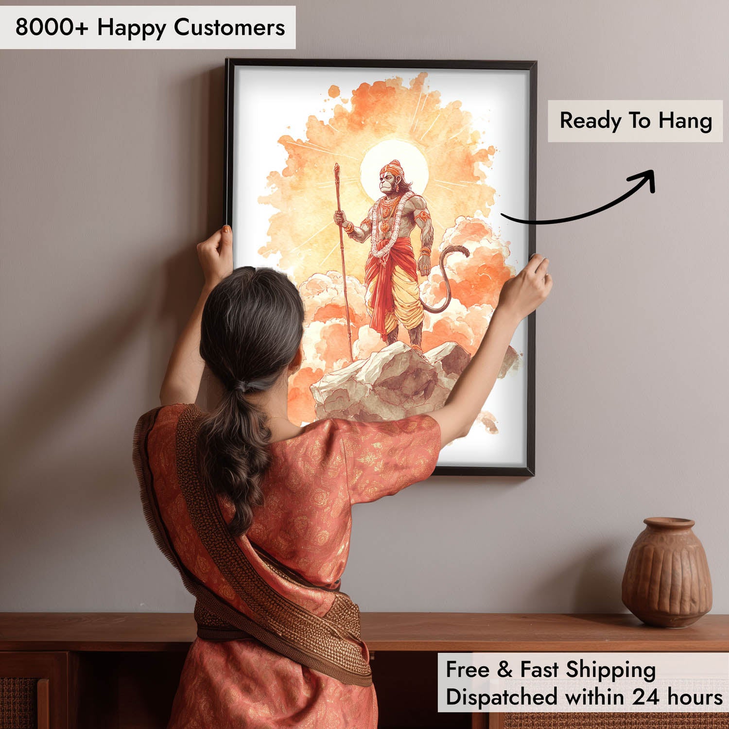Ready to Hang – Instantly elevates your pooja room or living space.