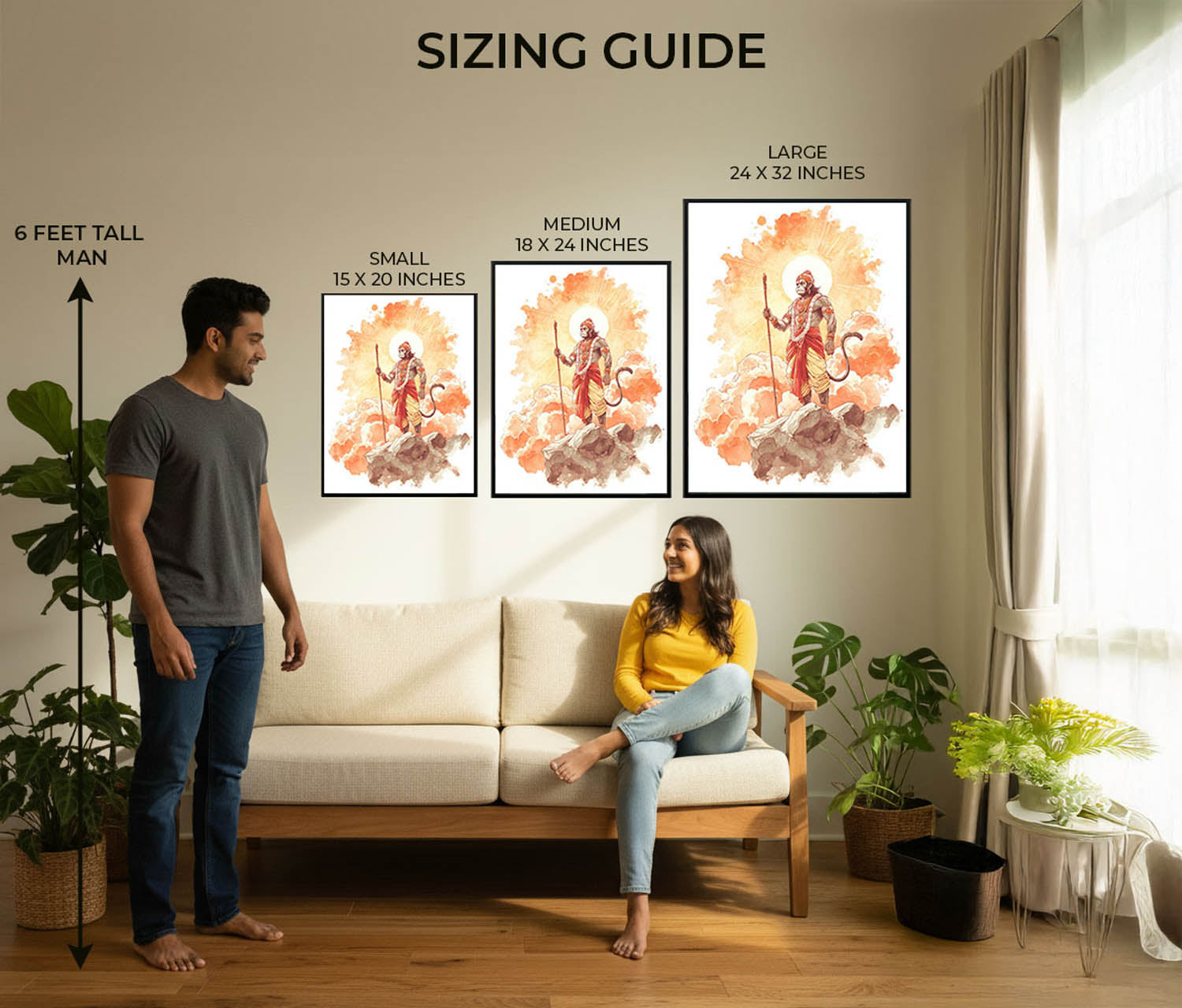 Also revered as Veer Hanuman wall art, Bajrangbali poster, and Mahaveer Hanuman décor, this artwork is cherished for its power to inspire resilience, protection, and spiritual strength.
