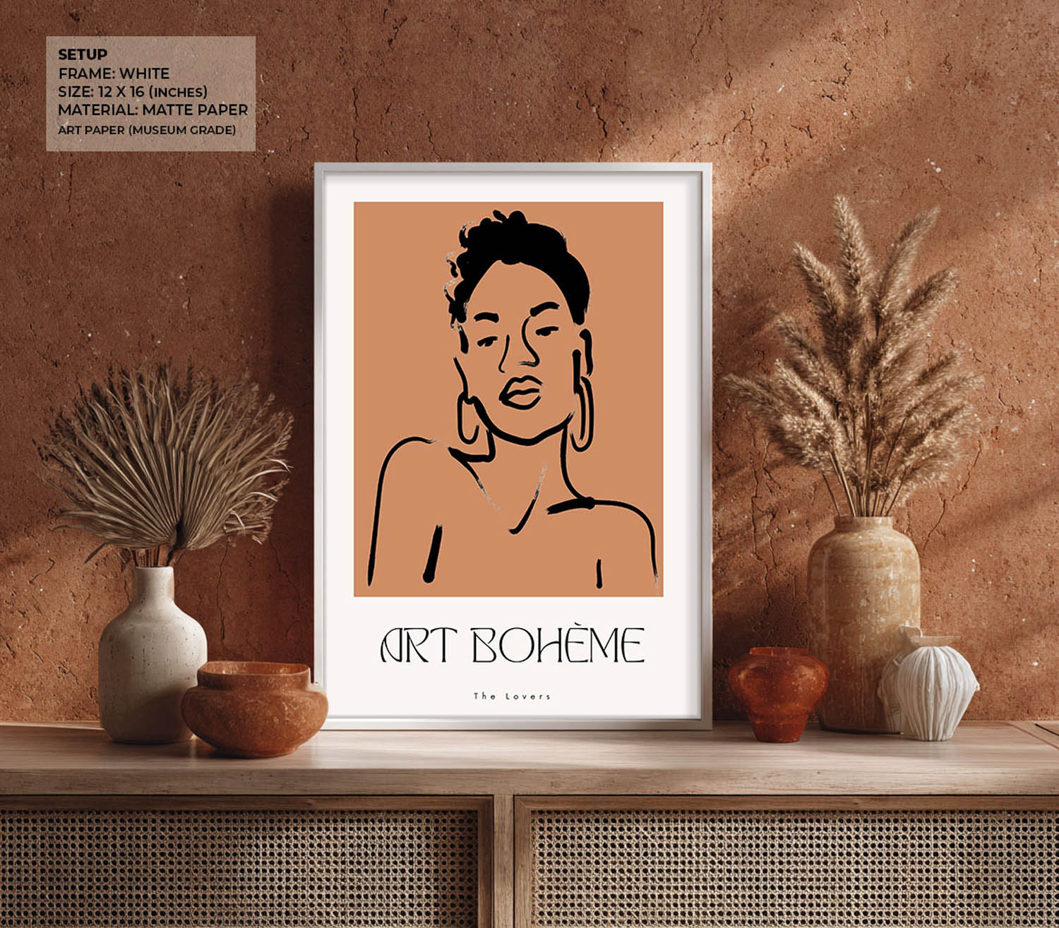 Timeless Design – Minimalist expressionism meets modern confidence in this striking boho-inspired piece.