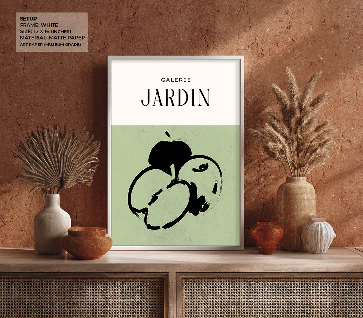 Apple Harvest is a tribute to the rustic rhythm of the orchard—where nature’s bounty is both humble and beautiful. This hand-drawn composition captures apples in a minimalist, inky style, set against a soft sage green wash that evokes the freshness of a morning garden.