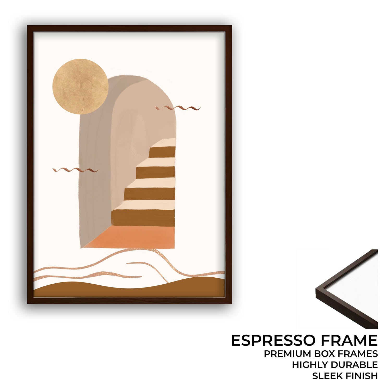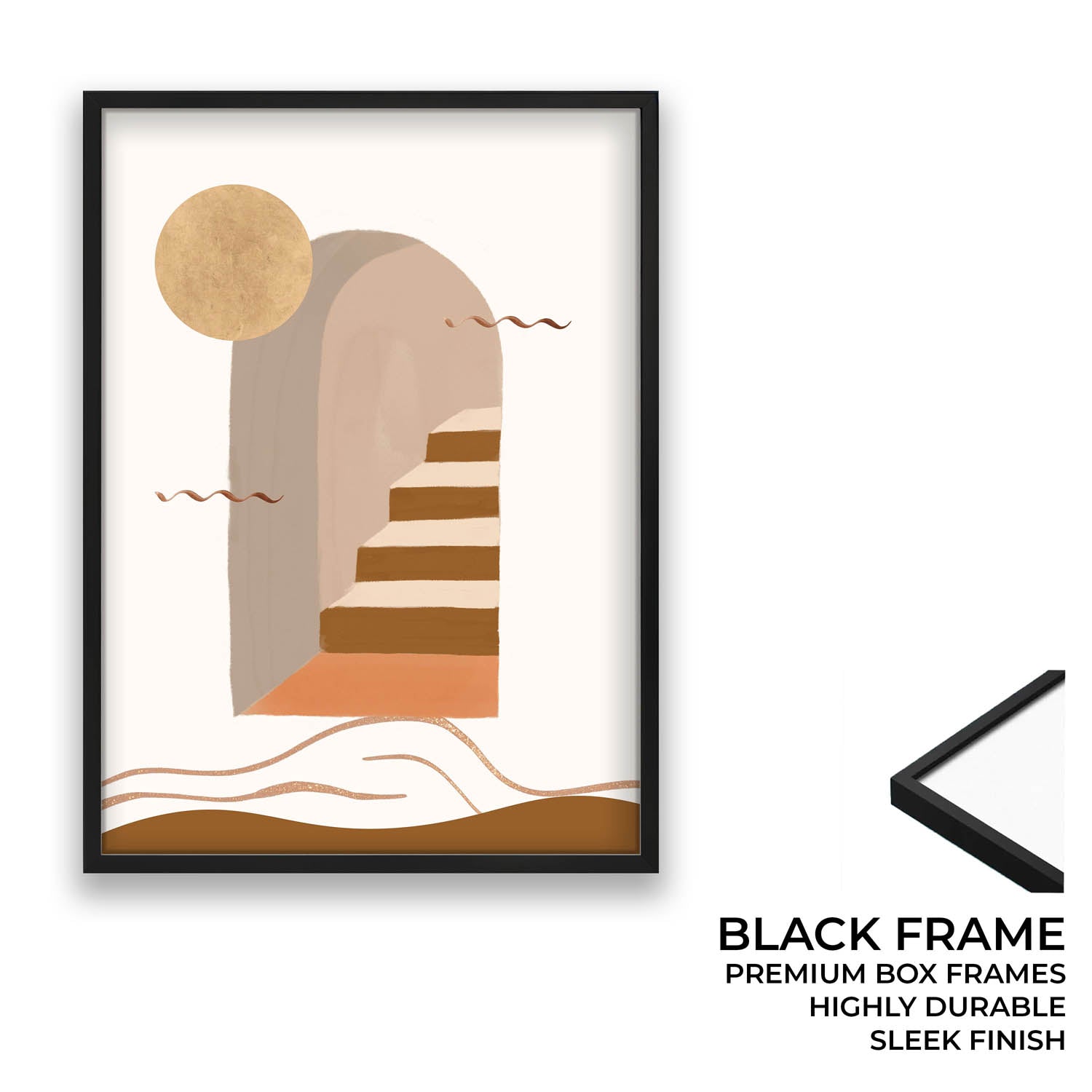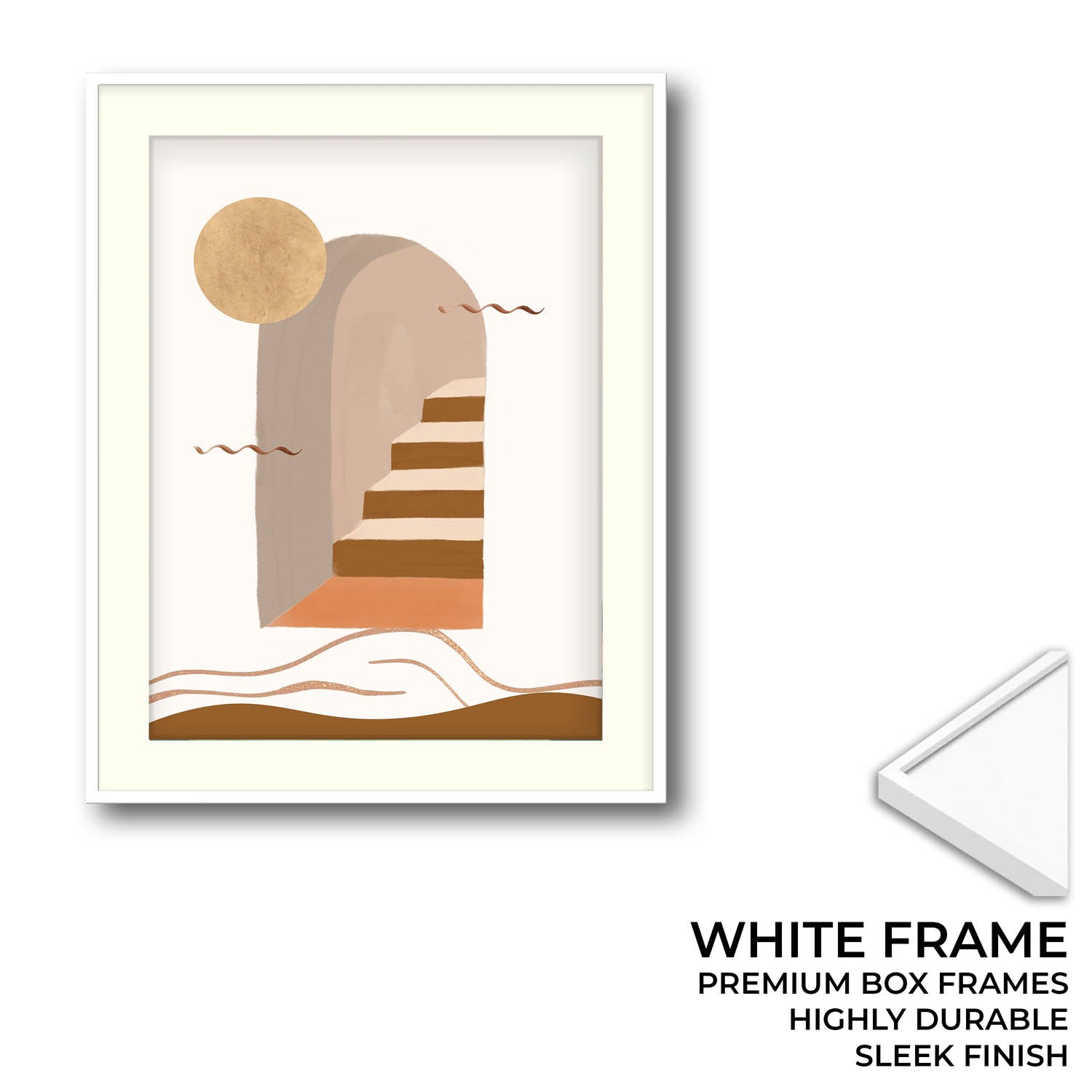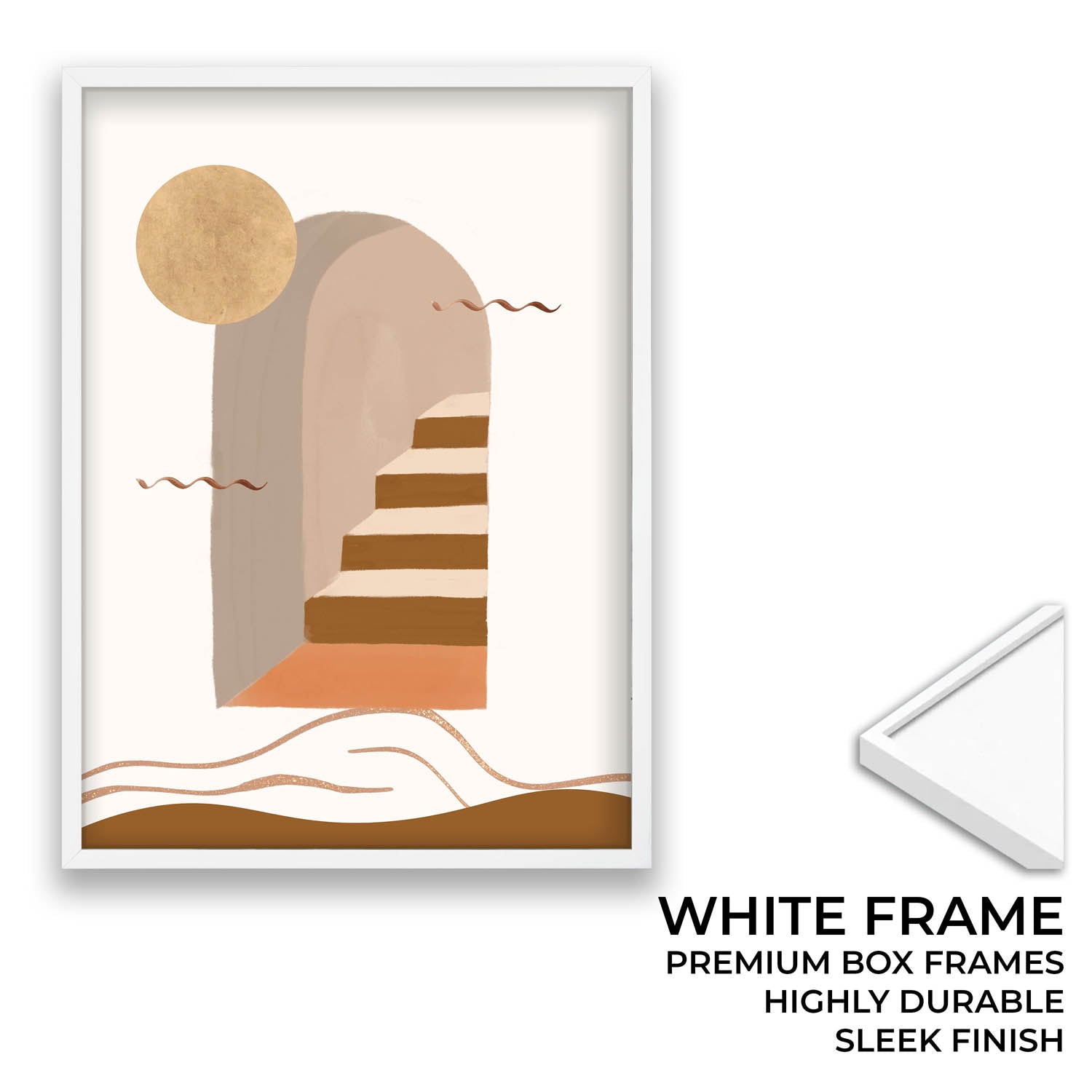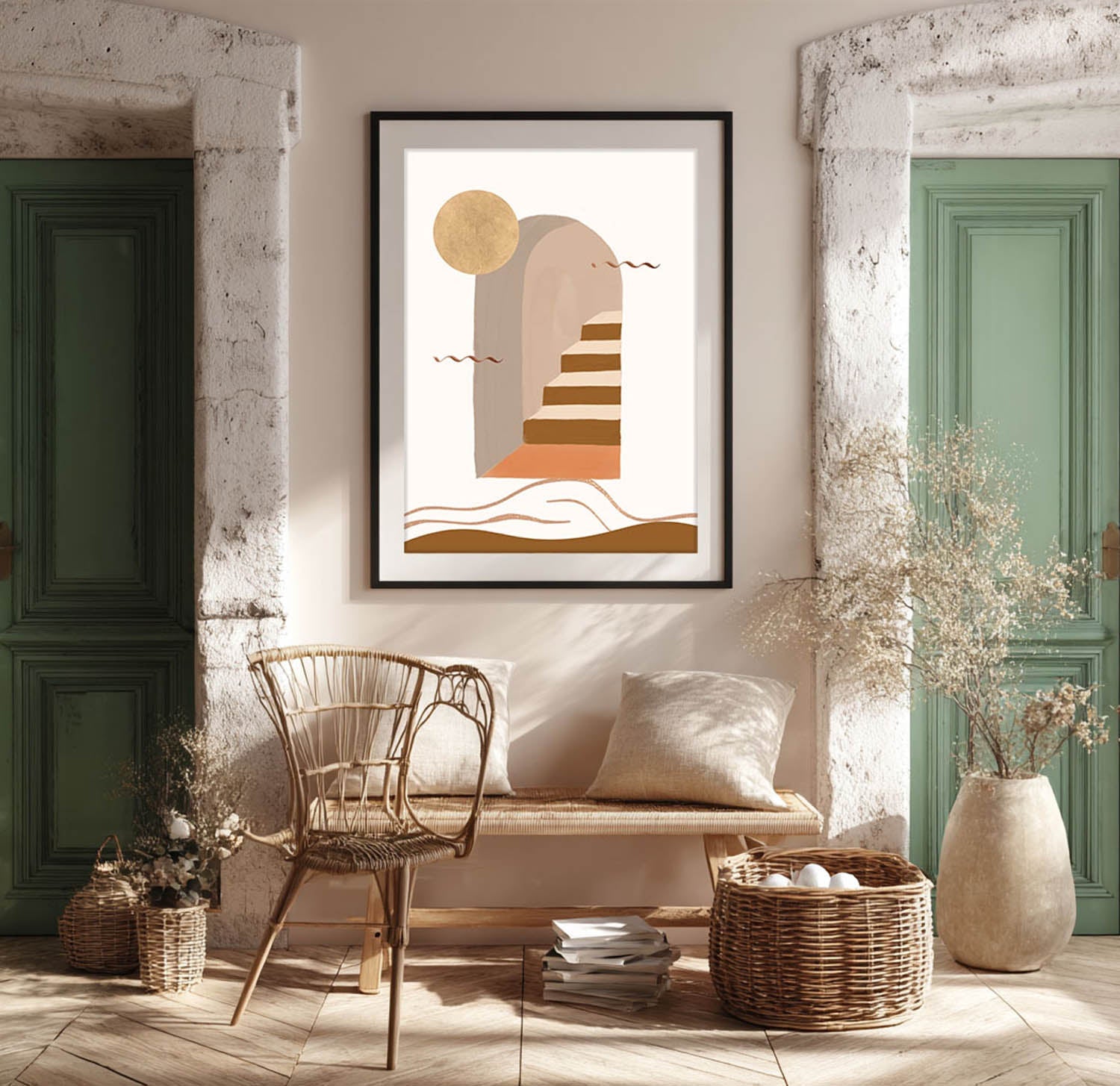 Ascend invites you into a dreamy, sun-kissed passage with soft textures and earthy gradients. A staircase disappearing into an arched doorway speaks of growth, mystery, and personal journeys.