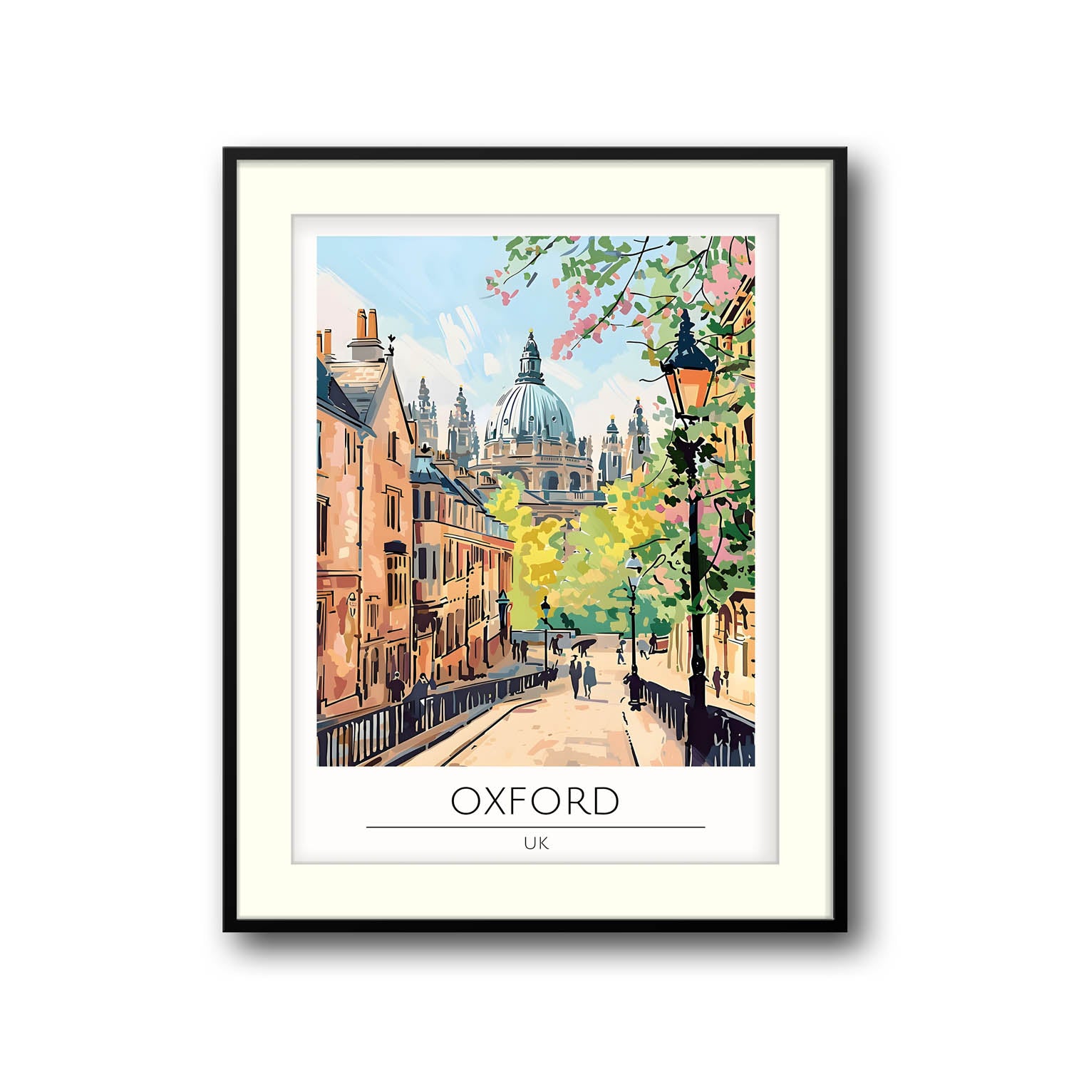 Bring home the elegance of historic academia with this Oxford travel poster. Capturing the charm of cobbled streets, golden stone buildings, and the iconic Radcliffe Camera, this artwork evokes the refined spirit of one of the world’s oldest university towns.