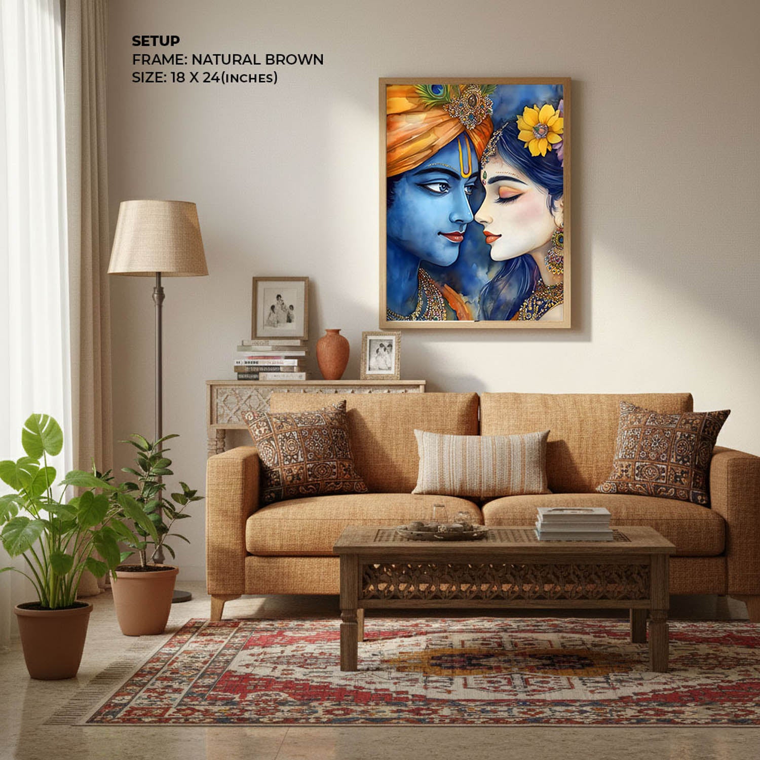 Celebrate the eternal love of Lord Krishna and Radha with this exquisite artwork. This painting beautifully captures the soulful connection between them, radiating romance, spirituality, and divine harmony.