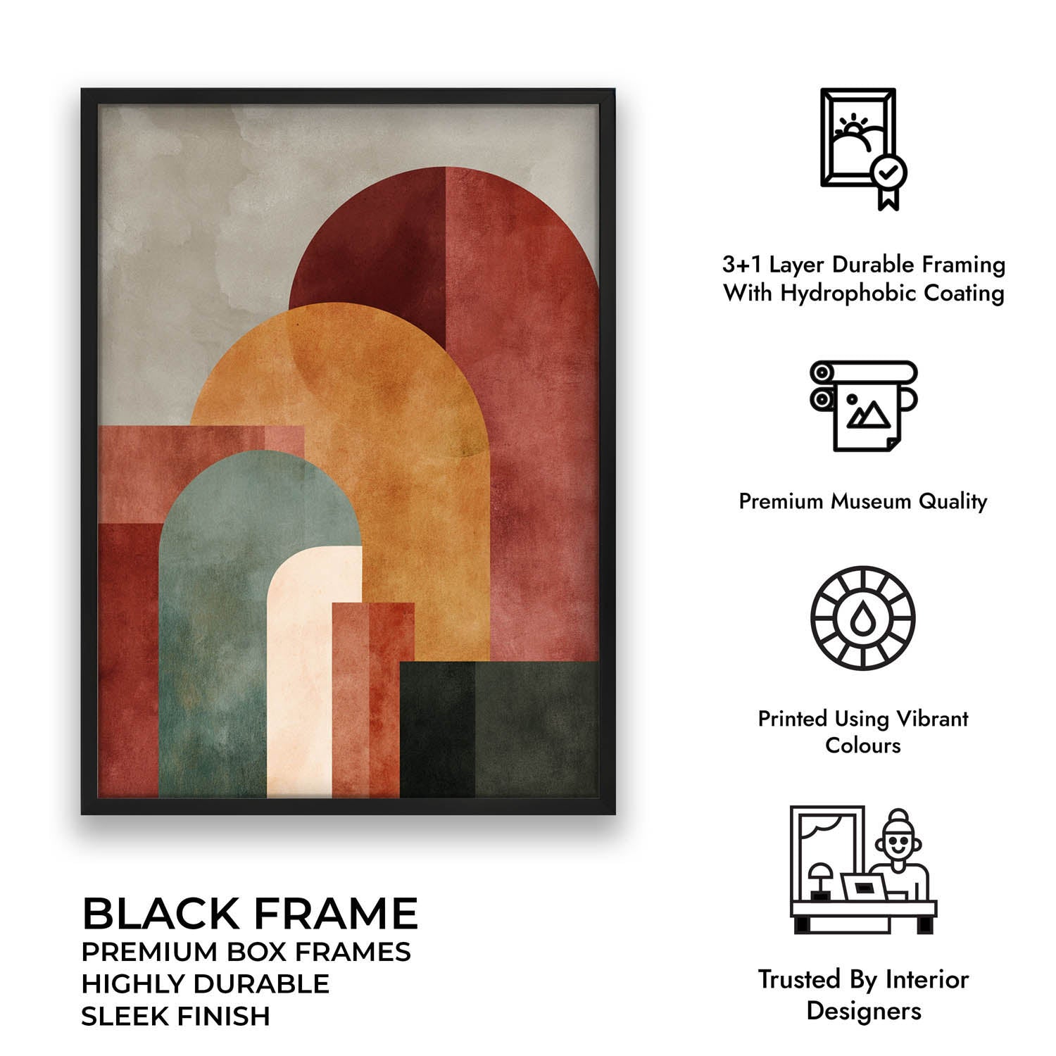 • Sturdy & Durable Framing – Long-lasting, sturdy frames that make for a sleek presentation.