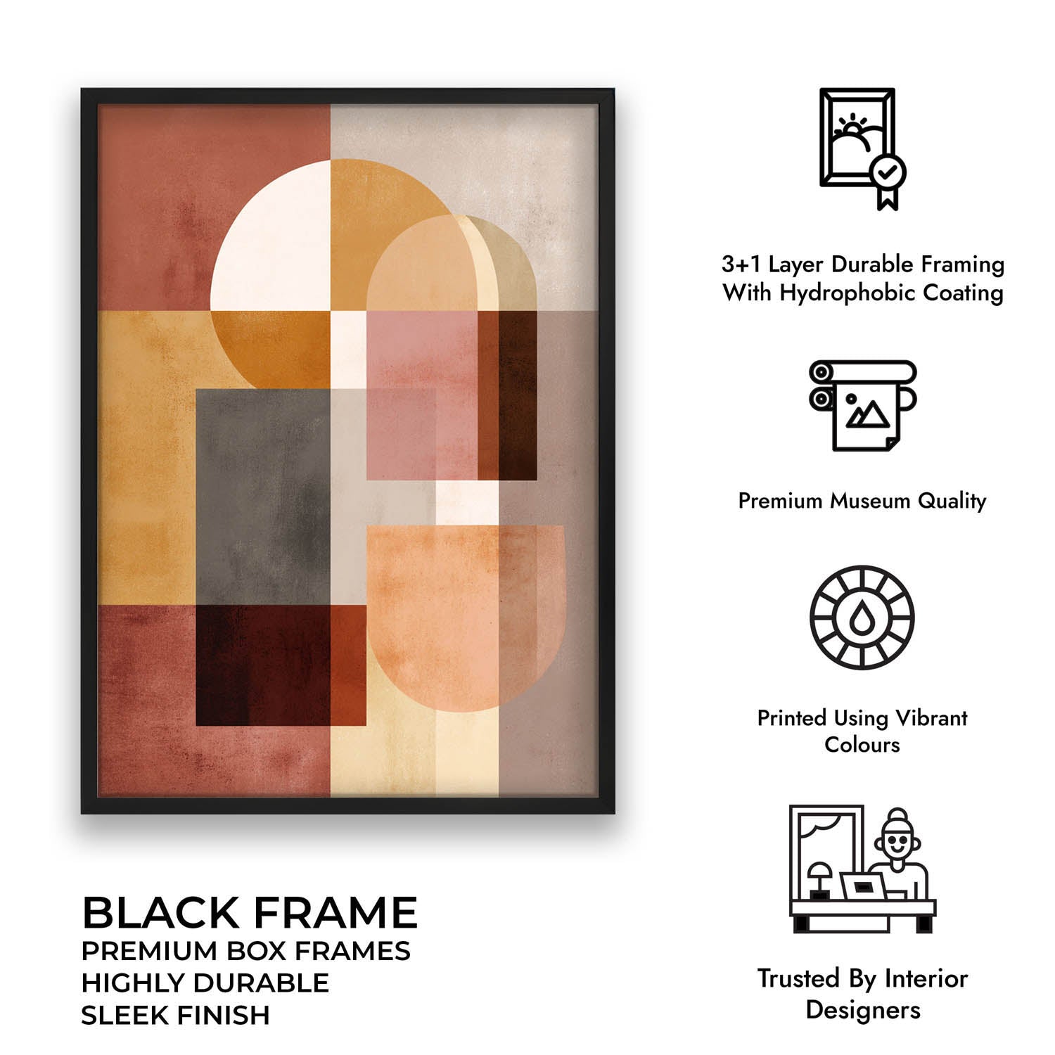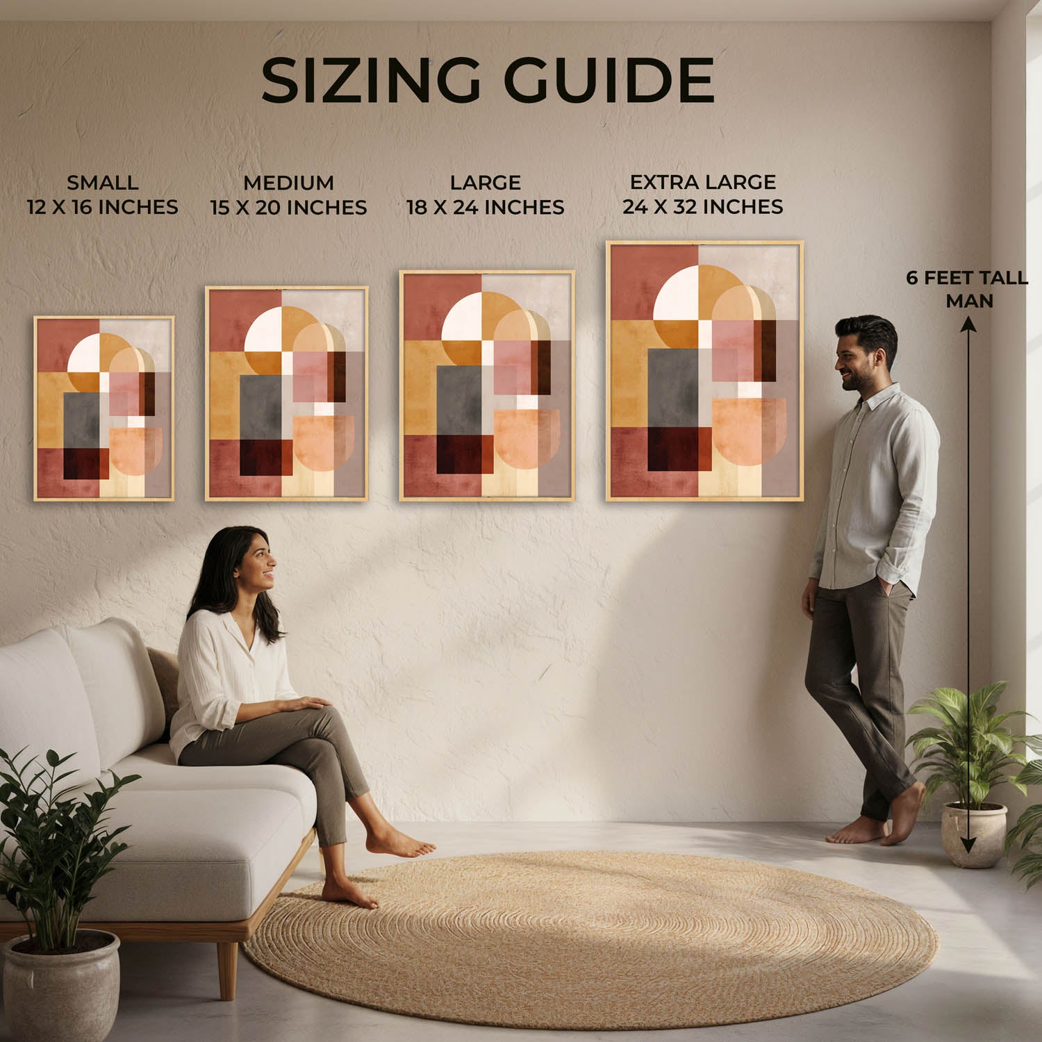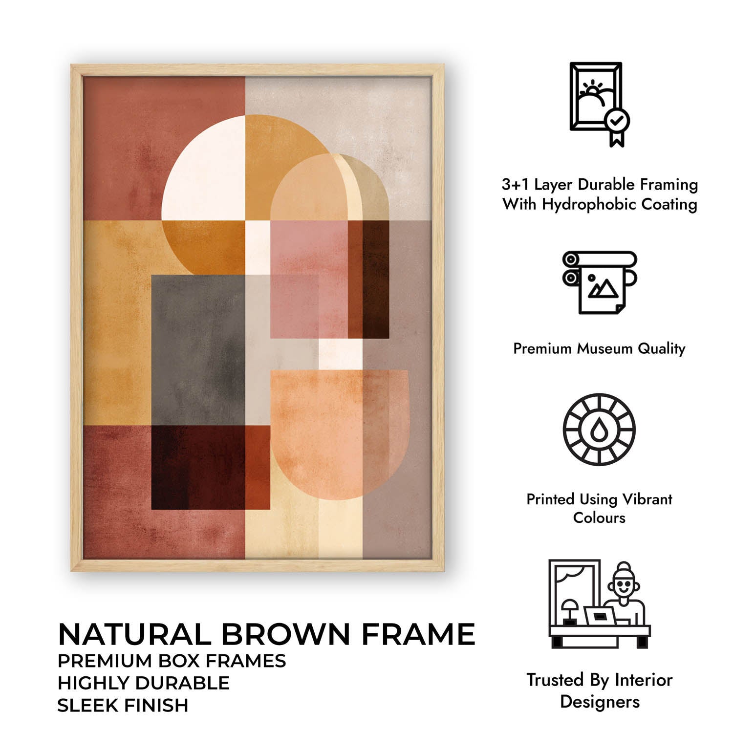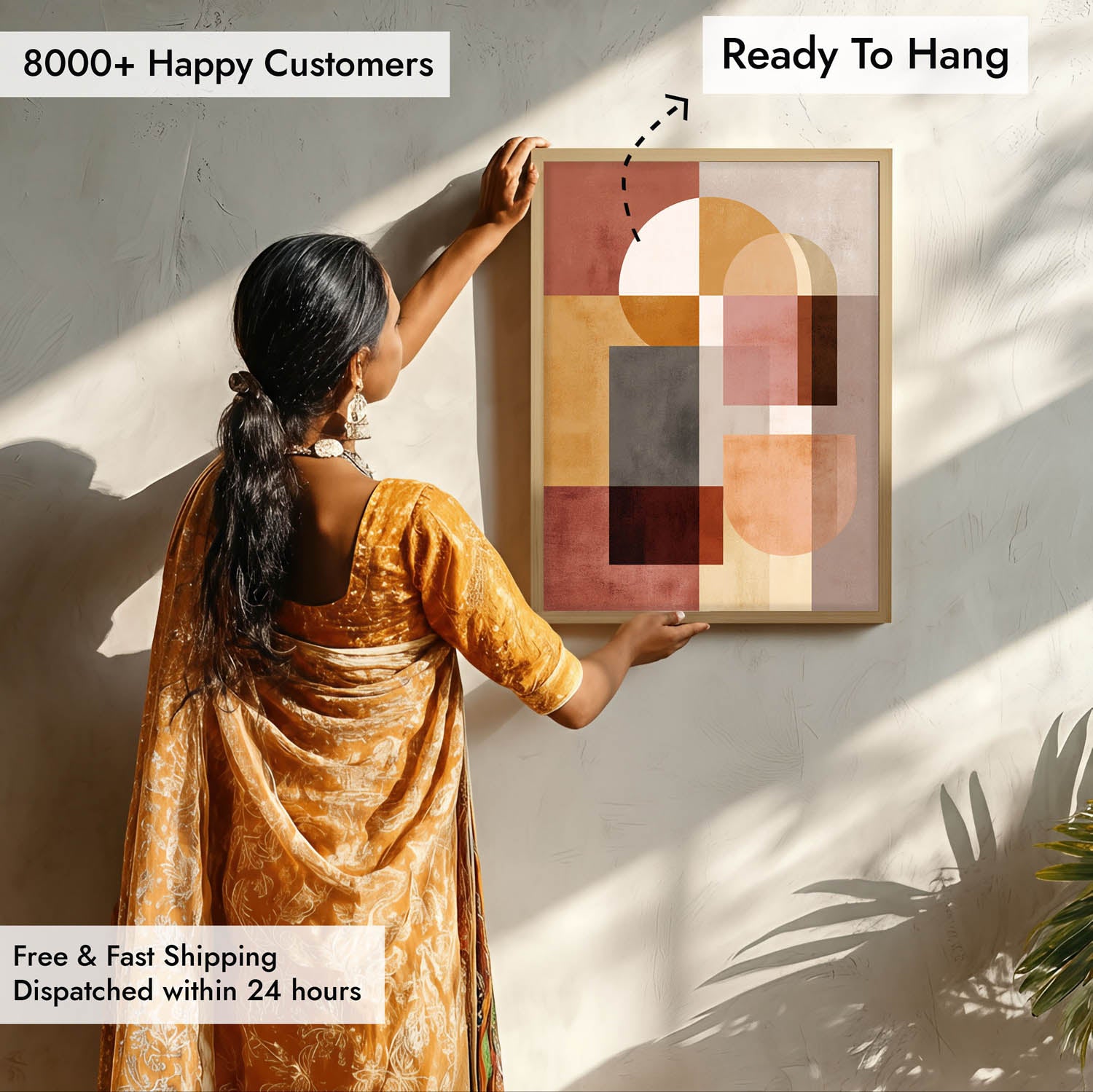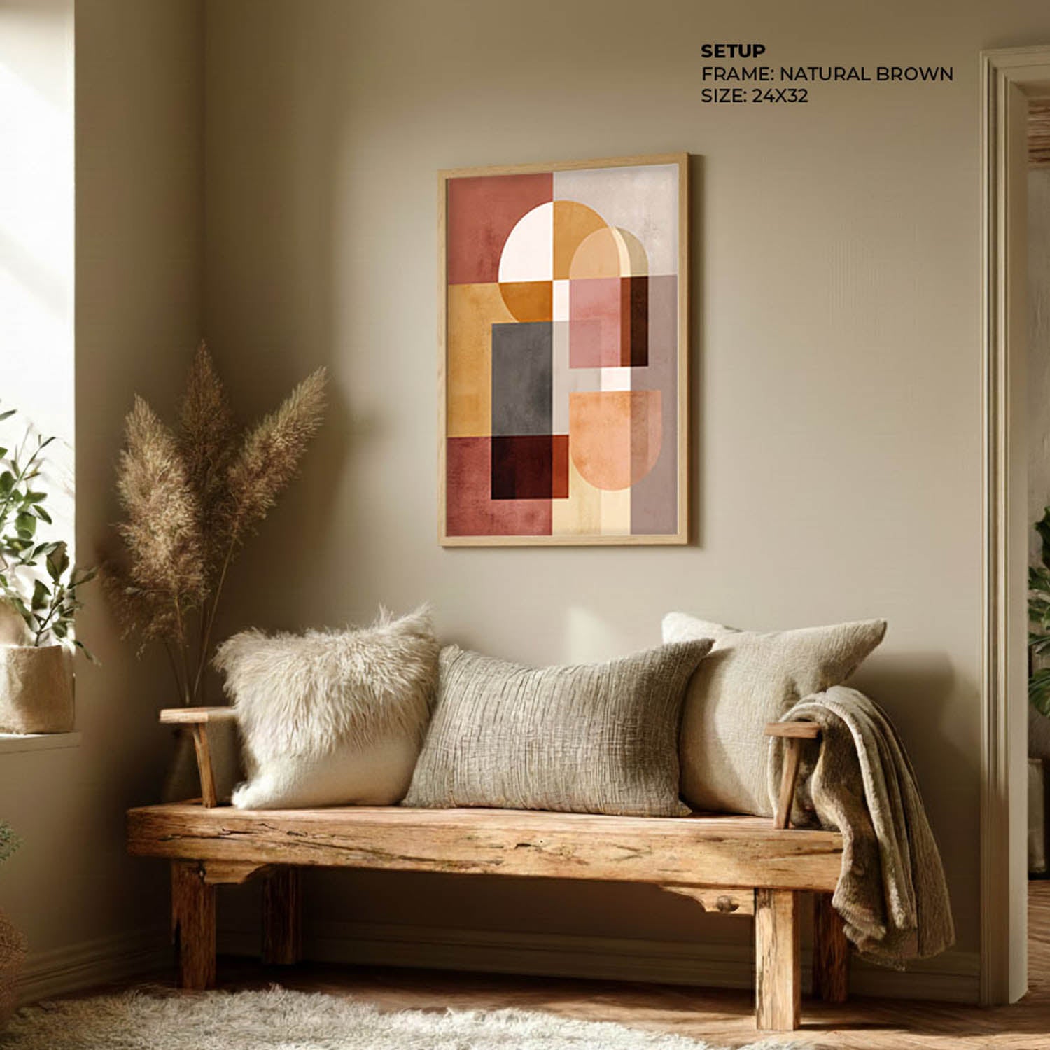 This piece brings together circles, arches, and blocks in a layered arrangement that feels intuitive and fluid. The overlapping forms and gentle color transitions create depth without sharp contrast, making it easy to pair with neutral or earthy interiors.