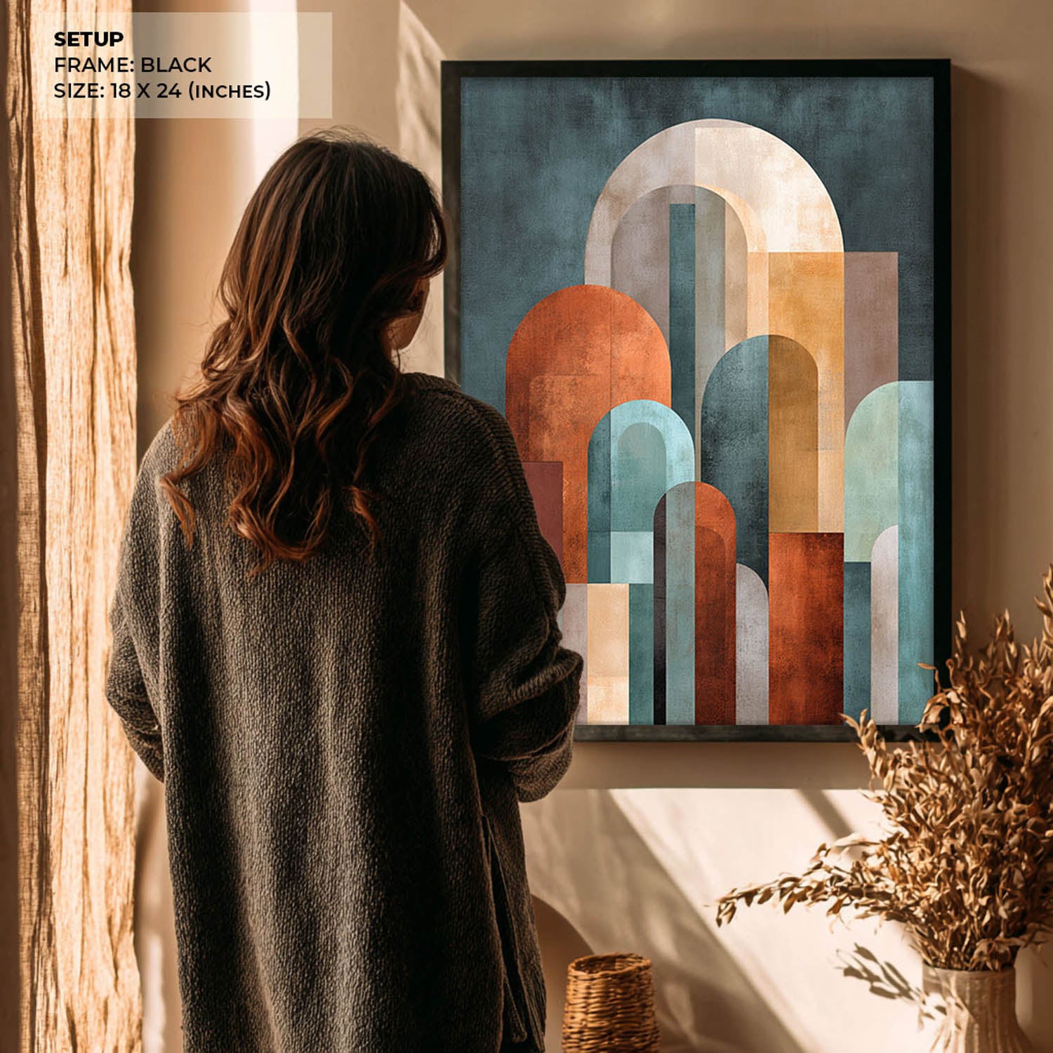 • Deep Teal, Rust & Soft Beige Palette – Earthy tones with a modern edge.